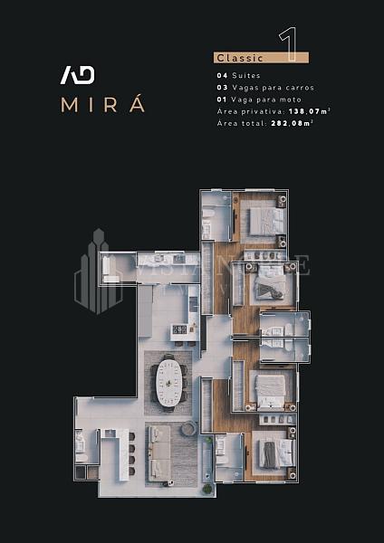 Apartamento à venda no Admirá Residence com 138,07m² privativos, quatro suítes e três vagas de garagem.