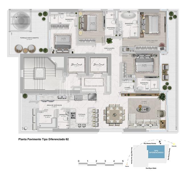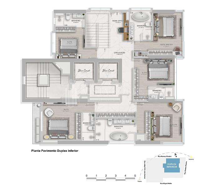 Apartamento à venda no Blue Coast Tower com 277.35m² área privativa, 505.05m² área total, cinco suítes e quatro vagas de garagem.