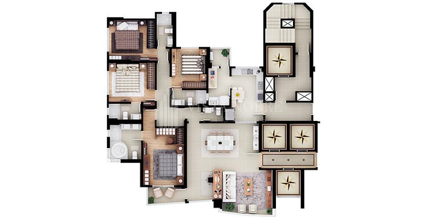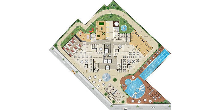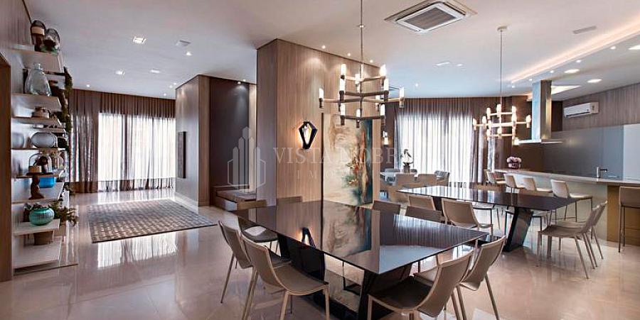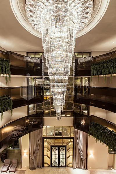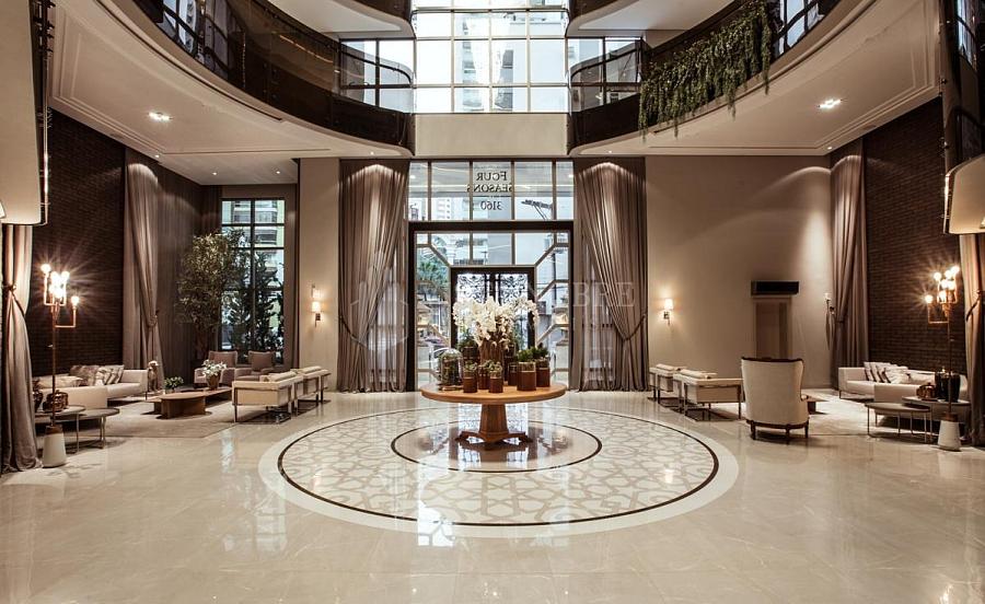 Com arquitetura arrojada, pé direito quíntoplo com 17 metros de altura, ostenta um belíssimo lustre no hall de entrada, trazido de Dubai, que expressa o alto padrão da Embraed Empreendimentos.