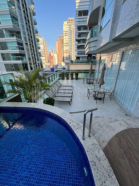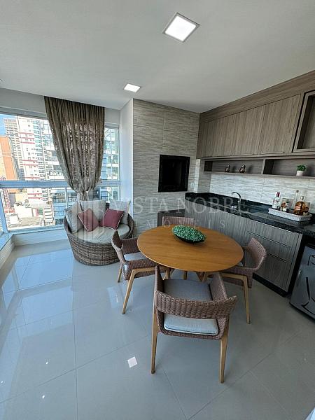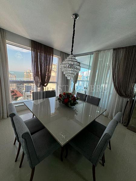 Lindo apartamento na localidade de  Meia Praia - Itapema, com bela vista do mar, bem ensolarado e iluminado. Mobiliado e equipado com 140 m² privativos. Espaçosa sacada com churrasqueira a carvão, salas de estar e jantar, lavabo, 3 suítes, sendo uma máster com banheira de hidromassagem, lavabo e 3 vagas de garagem.