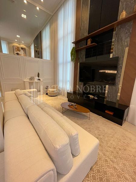 EMBRAED: Raridade, Apartamento com pé direito duplo256m² privativos, sacada externa com churrasqueira a carvão, amplo living integrado, 3 suítes sendo 1 master, 4 vagas de garagem.