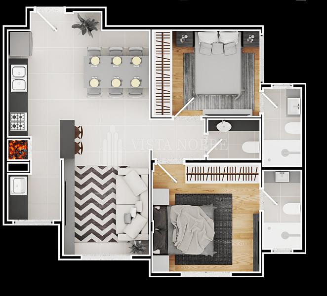 2 dormitórios (2 suítes)