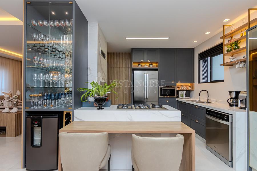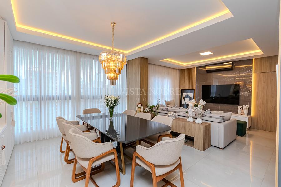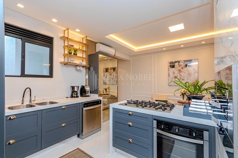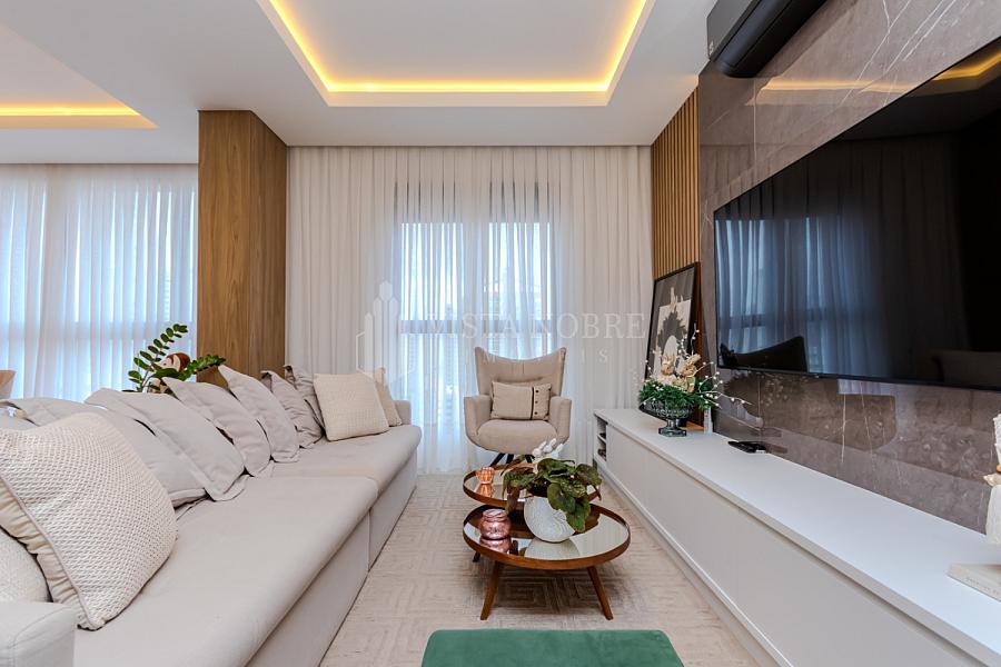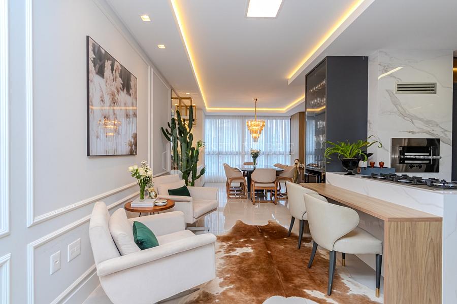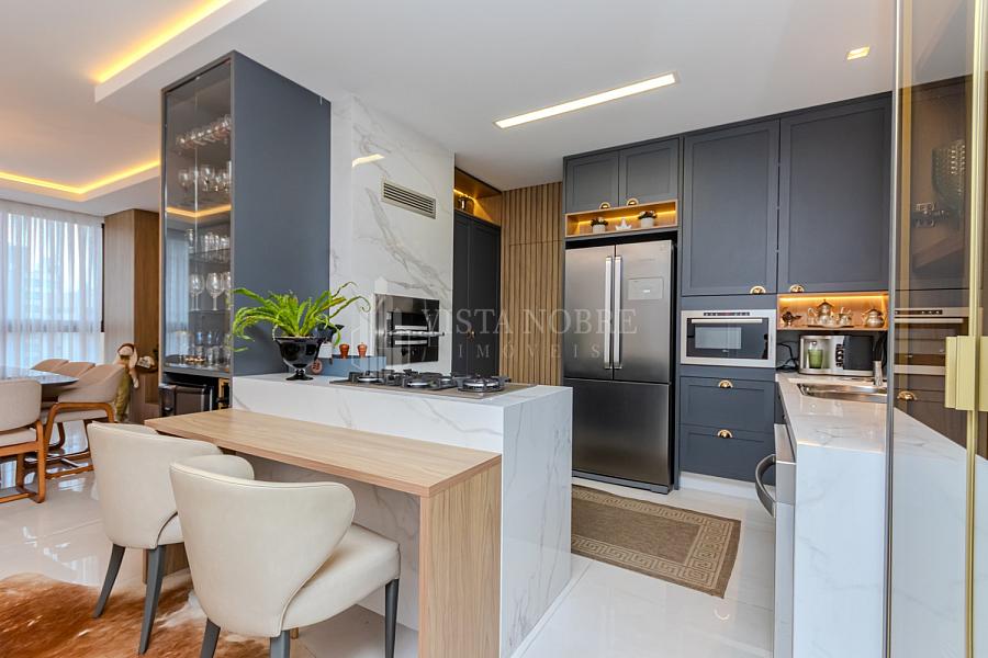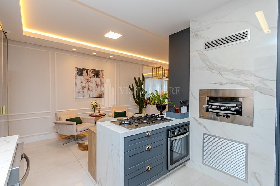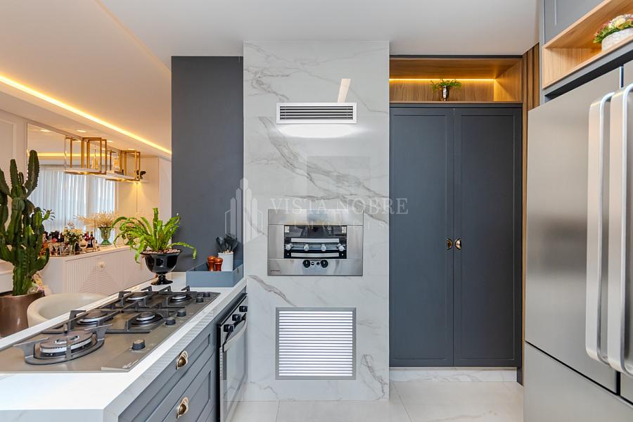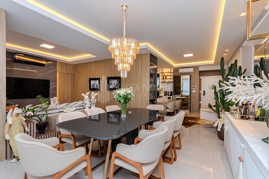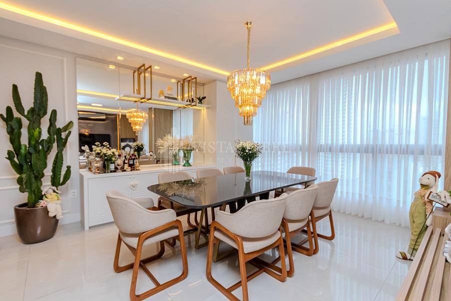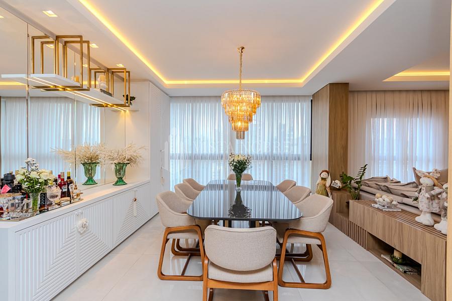 Apartamento  mobiliado e equipado com um espaço de 03 dormitórios, sendo 03 suítes e espaçosa sala de estar e sala de jantar, lavabo, cozinha grill (churrasqueira à gas) completamente equipada, área de serviço e as 03 vagas de garagem