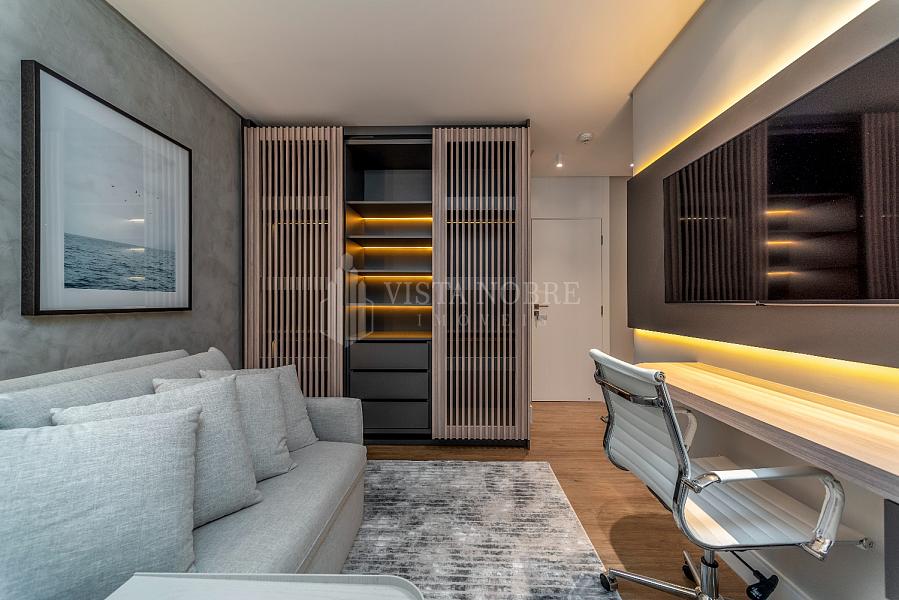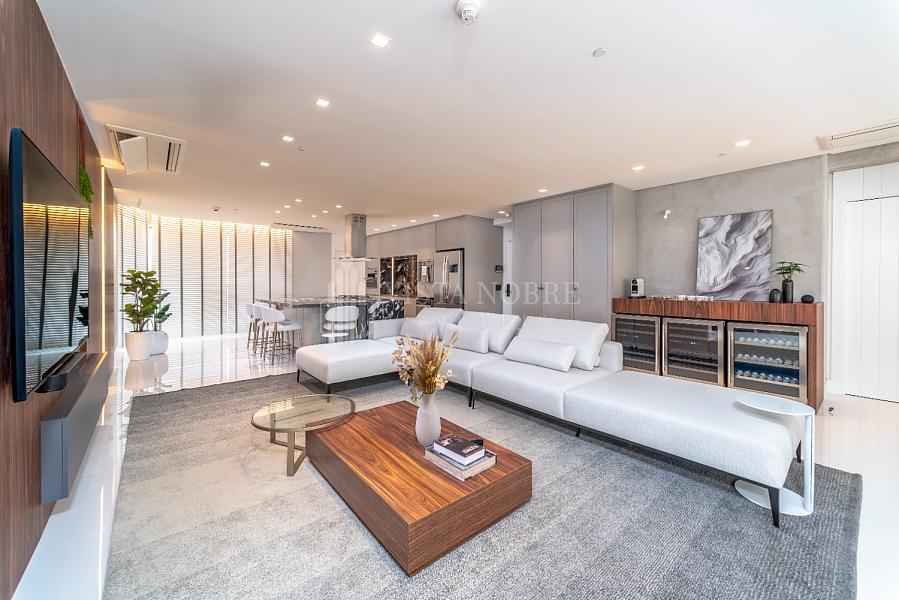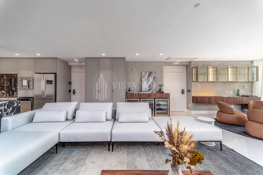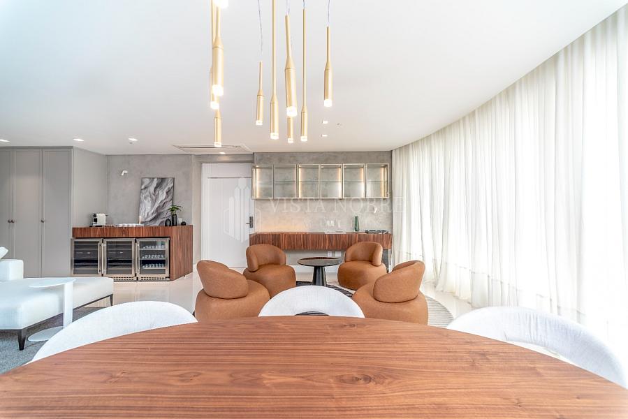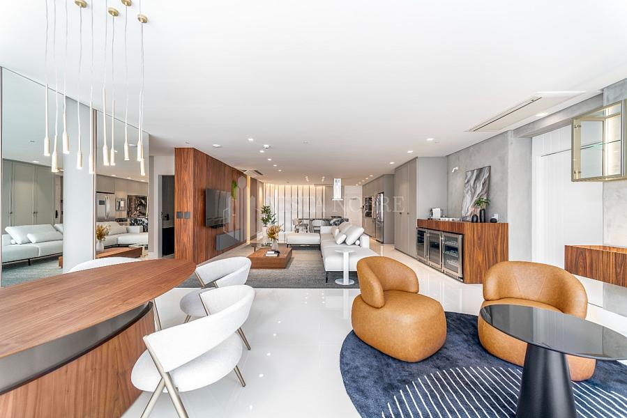 Apartamento no Yachthouse by Pininfarina, 265 m² de área privativa, finamente mobiliado e decorado, banheiro social, amplo living, sala de jantar, churrasqueira a gás, vista mar, 03 vagas de garagem privativas.
